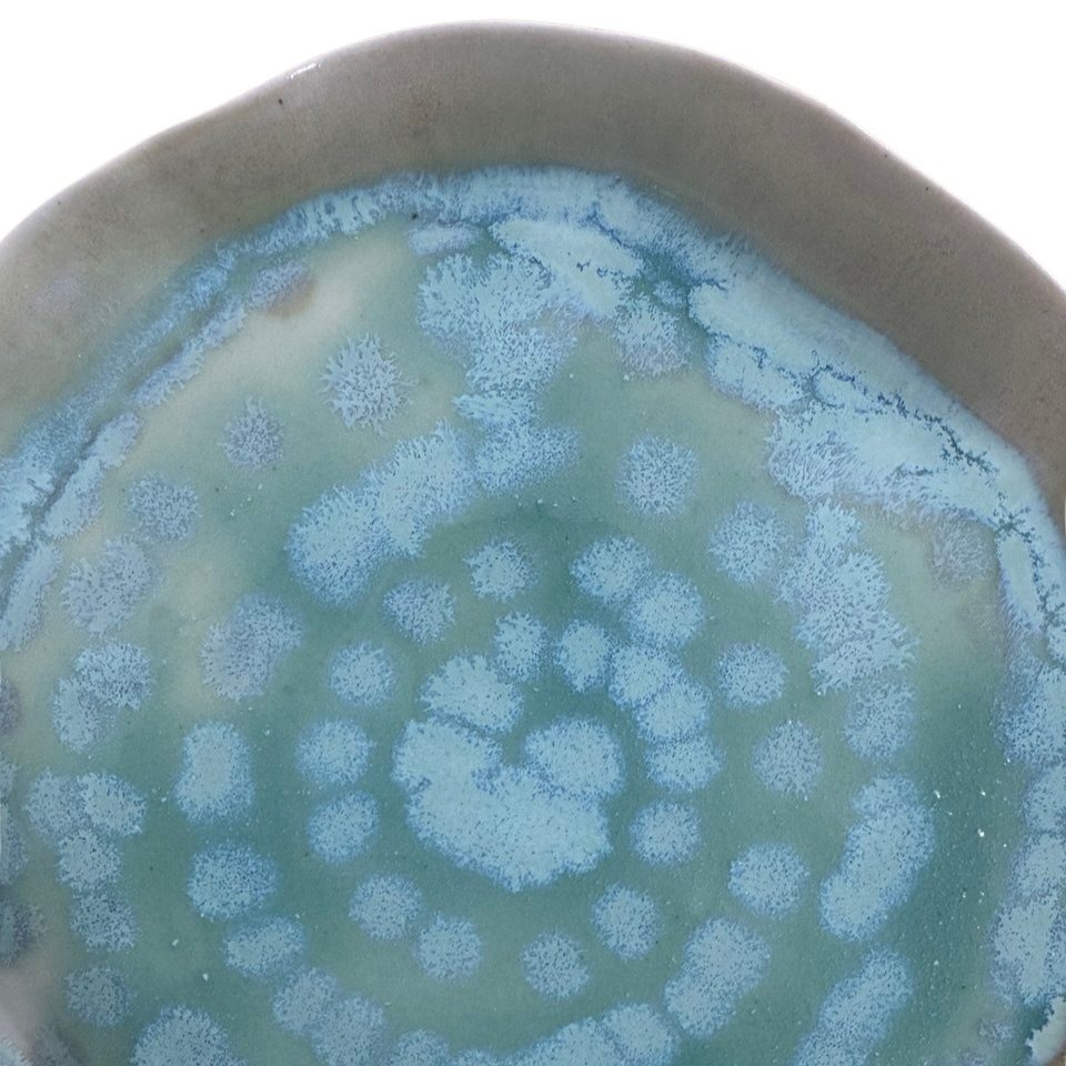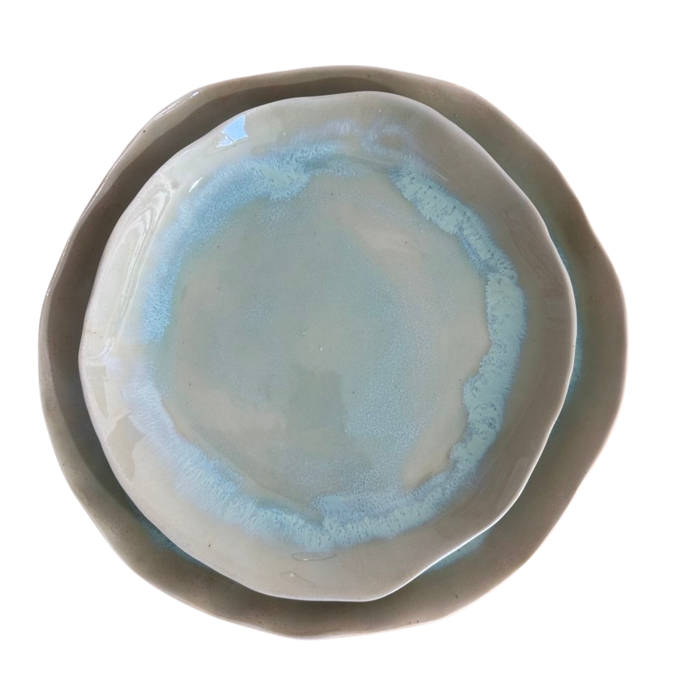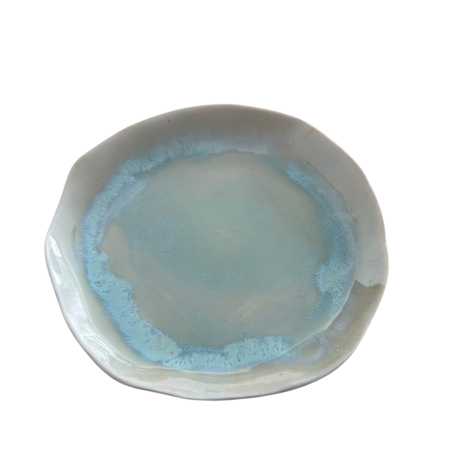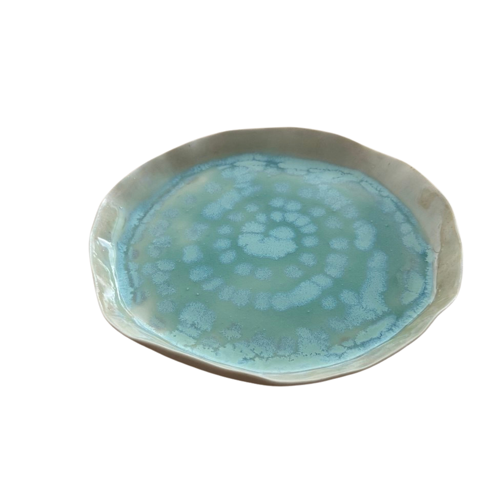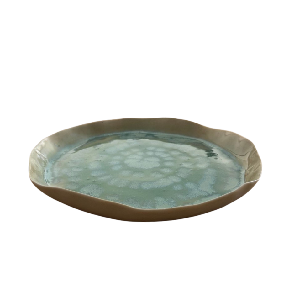 AquaTerra Tabak, suyun akışkanlığı ile toprağın doğal dokusunu buluşturan, elde şekillendirilmiş özel bir stoneware tasarımdır. Organik formu ve özgün glaze geçişleri sayesinde her parça benzersizdir.