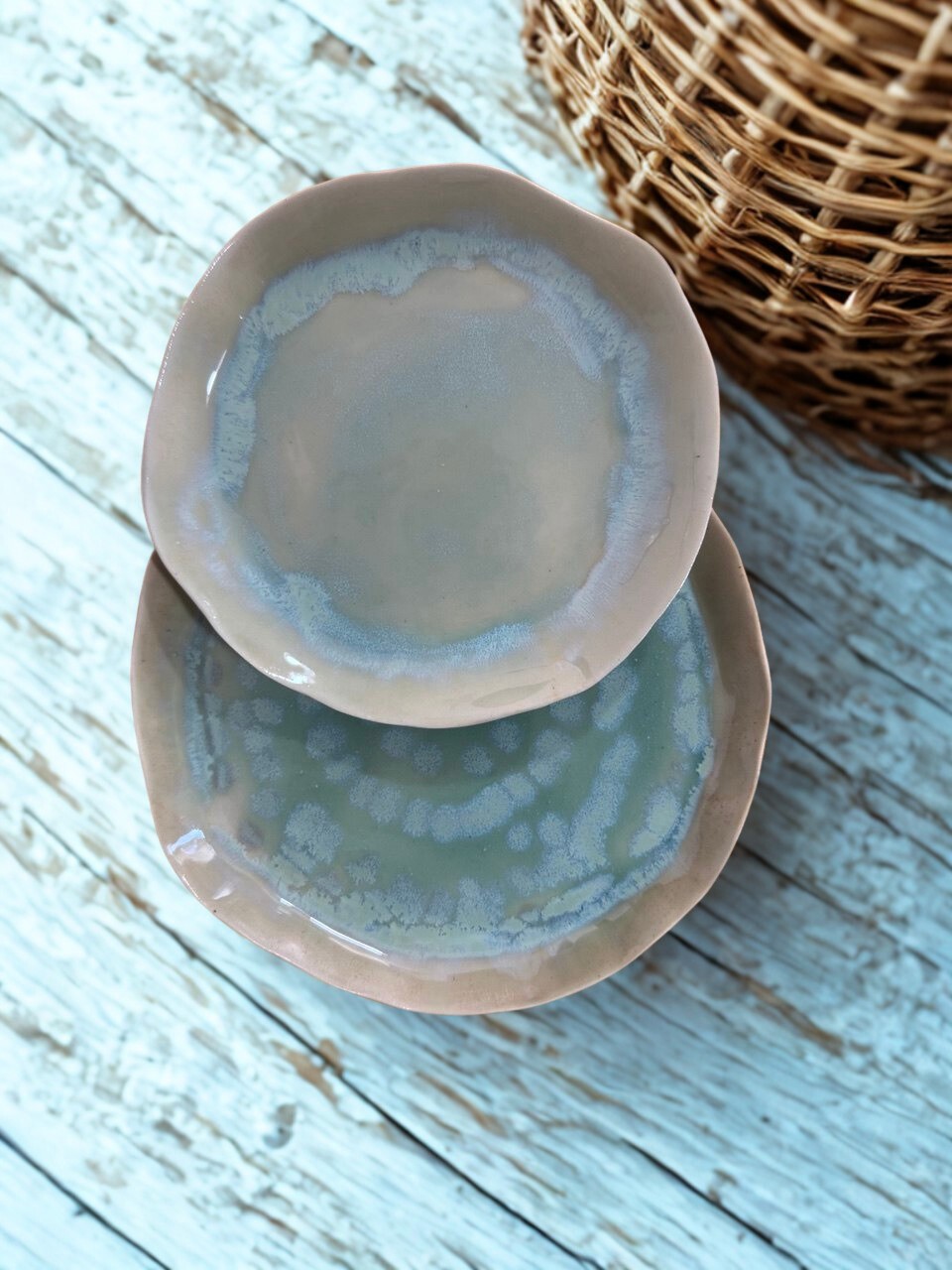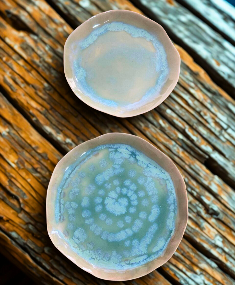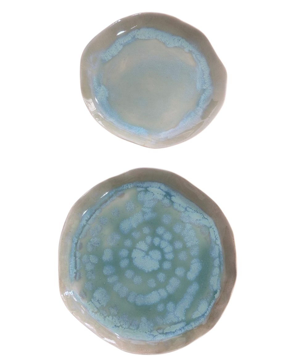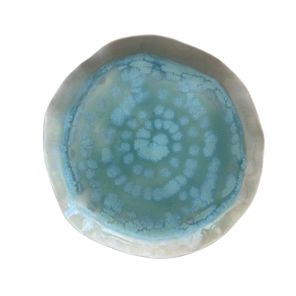 AquaTerra Tabak, suyun akışkanlığı ile toprağın doğal dokusunu buluşturan, elde şekillendirilmiş özel bir stoneware tasarımdır. Organik formu ve özgün glaze geçişleri sayesinde her parça benzersizdir.